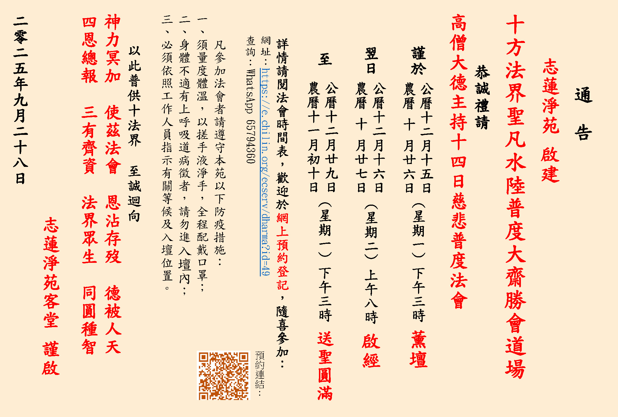 启建水陆普度大斋法会通告
